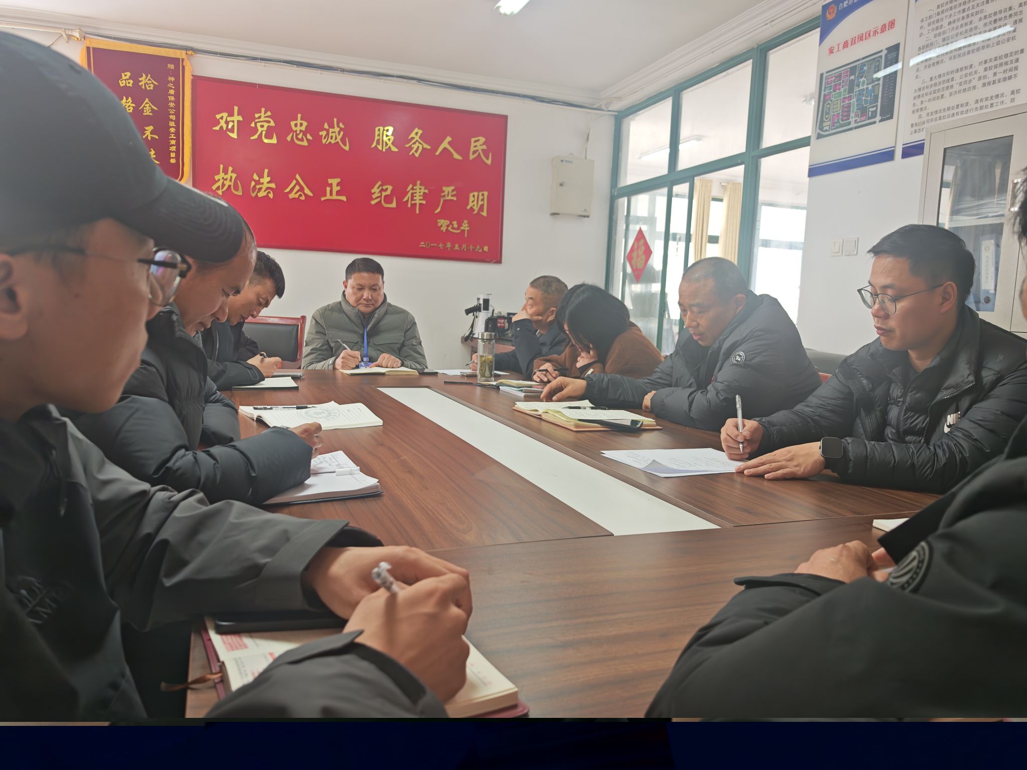 最后,处长陈松在会上提出四有四抓工作准则:工作推进要有计划、有落实、有检查、有整改;日常管理要抓实安全、质量、规范、保障,以精细化管理构建安全、和谐、有序的校园环境。针对校园文明与环境治理,会议安排控烟与垃圾分类专项工作:即日起严格执行校园控烟规定,在指定区域吸烟,办公室及执勤点位做好垃圾分类,引导队员养成文明习惯,展现校园文明风貌。