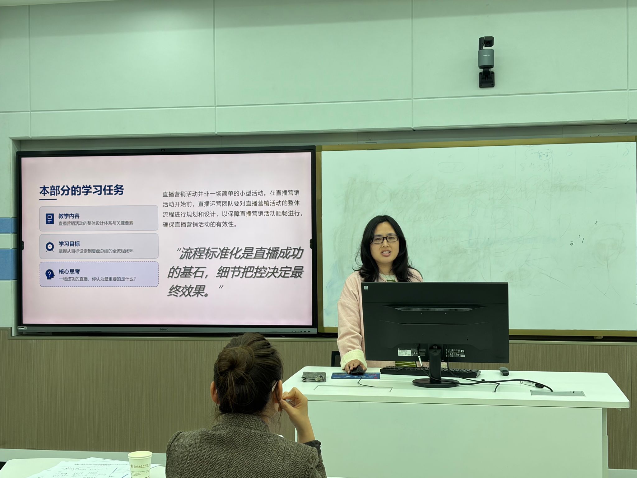 本次大赛设置教学实施报告汇报和无生教学展示两个环节。来自学院各教研室的4个教学团队同台竞技,分别围绕《跨境电商实务》、《保险理论与实务》、《国际市场营销》、《商务英语翻译》等专业核心课程展开精彩教学展示。有的团队以真实产业项目驱动教学,将企业案例转化为教学任务;有的团队深度融合数字技术,利用大数据、AI辅助等手段提升课堂效能;还有的团队聚焦课程思政,在专业知识传授中自然融入价值引领。参赛教师准备充分,教学设计理念新颖,展现了扎实的教学基本功和灵活多样的教学方法,体现了经济贸易学院教师队伍的专业素养与创新活力。