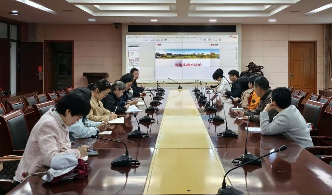 为深化产教融合育人机制,推进智能会计信息系统数字化教材建设,破解传统纸质教材建设难点,夯实专业数字化教学体系建设,2026年4月22日,会计学院会计教研室开展专题教研活动。活动特邀用友ERP高级项目经理戴星星、用友高级实施顾问陈志伟两位企业资深专家进校分享。会计学院院长张颖、副院长费玄淑、会计教研室专业教师参加本次活动。