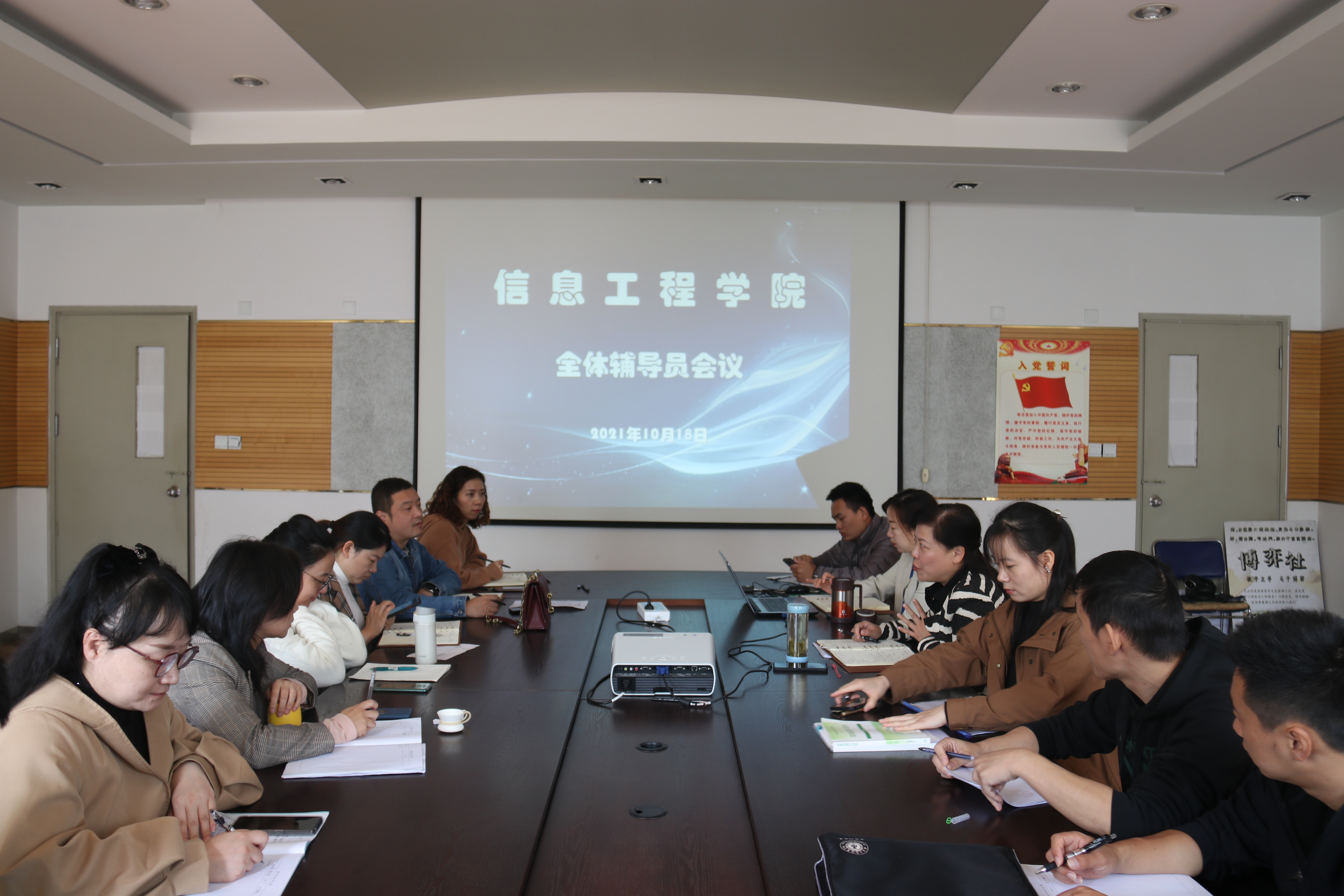 为总结和部署近期学生管理各项工作,10月18日中午,我院在信息工程学院307会议室召开全体辅导员专题例会,会议由信息工程学院党总支书记张静雯主持。
