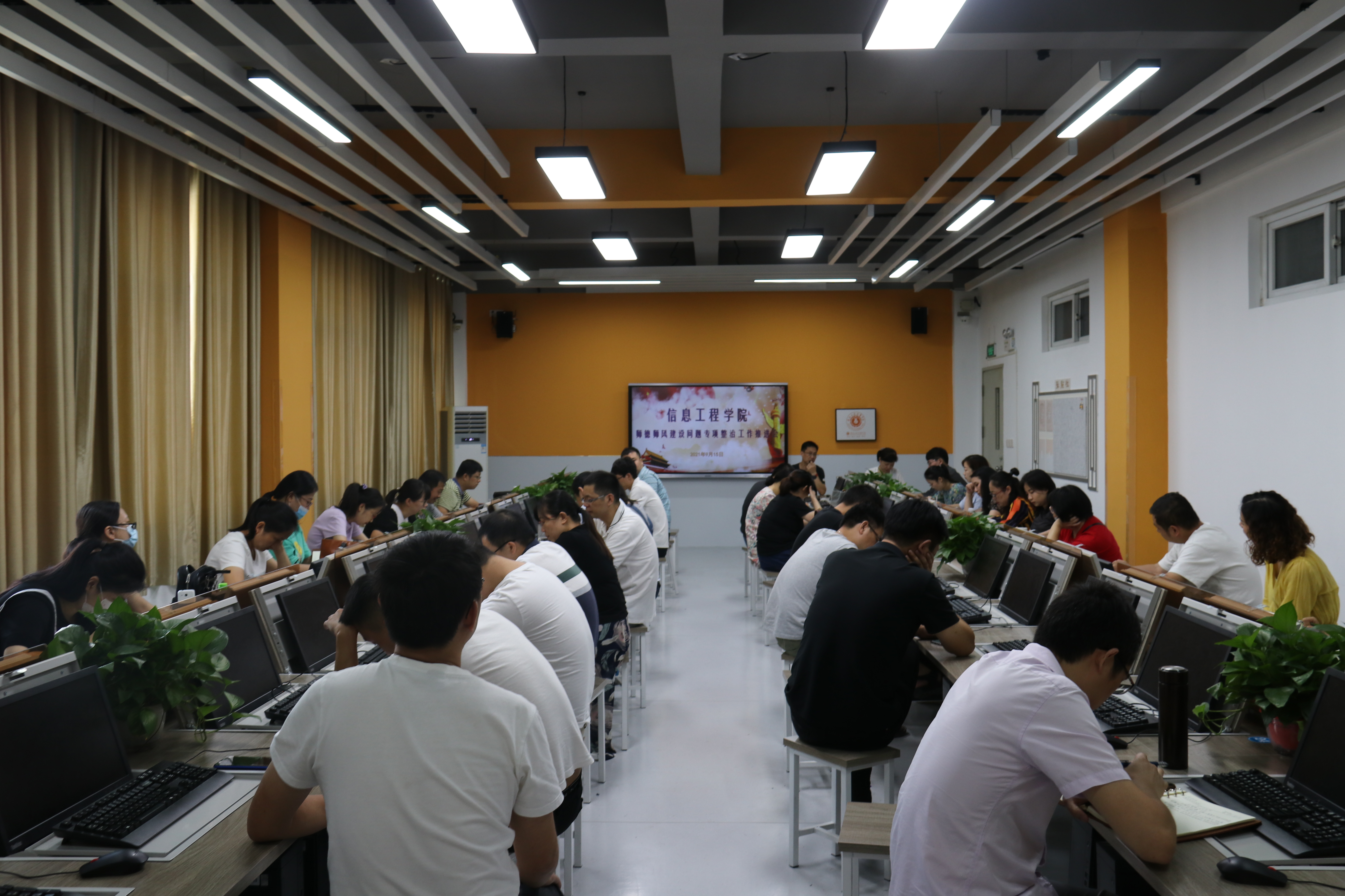 为深入贯彻落实学校师德师风建设问题专项整治工作动员大会精神,有效提升教师思想政治素质和职业道德水平,信息工程学院于9月15日在实训楼408教室召开师德师风建设问题专项整治工作动员部署会议,学院全体教职工参加了此次会议,会议由党总支书记张静雯主持。