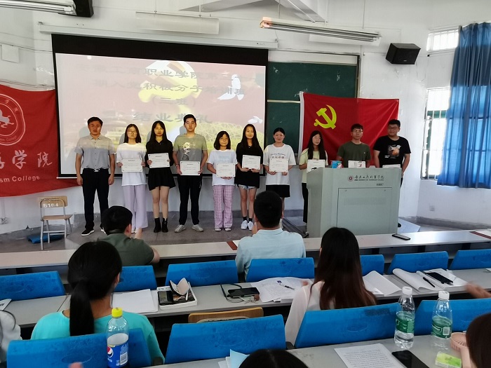 结业典礼在庄严的《国歌》歌声中拉开帷幕,张程程老师回顾和总结了本期培训班的基本情况。旅游学院党总支高度重视此次培训班的相关工作,专门邀请各学院负责思政工作的领导和老师为学员们上课,此次培训班还专门组织了集体讨论和实践活动,取得了较为理想的教学效果。本次入党积极分子培训班共有93名学员参加了学习,最终87名同学顺利结业,丁辰辰等9名学员获得了优秀学员的荣誉称号。随后,边书记为优秀学员颁发了荣誉证书,殷宏伟老师为合格学员颁发了结业证书。