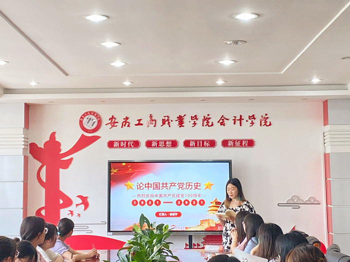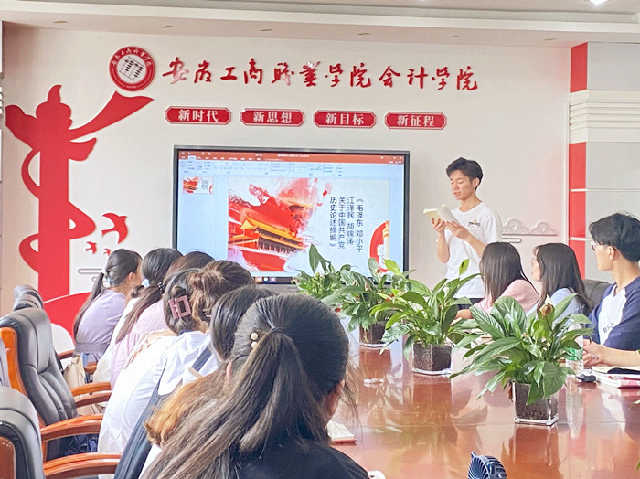 自开展党史学习教育以来,会计学院学生第一党支部认真贯彻落实校党委和上级党总支的工作要求,坚持做到突出重点、精心谋划,在高质量完成“规定动作”的同时,结合学生支部实际,开展创新“自选动作”,让师生党员在党史学习教育中坚定理想信念。为此 ,会计学院学生第一党支部于6月30日在党员活动室开展了党史学习教育专题学习研讨会,会议由支部书记余想花主持,支部在校师生党员参与了学习。