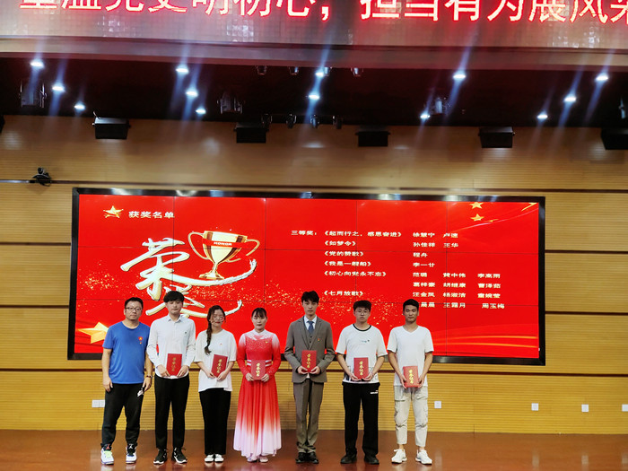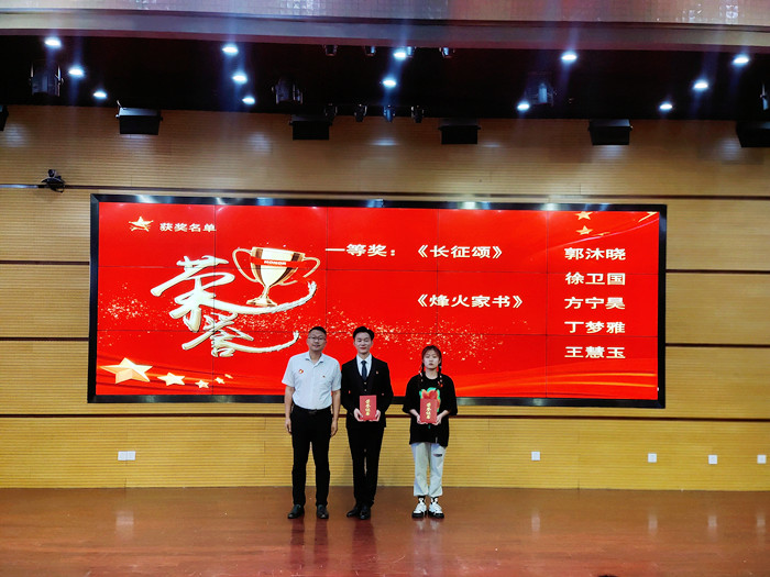 为隆重庆祝中国共产党成立100周年,营造浓郁的校园文化氛围,丰富同学们的业余文化生活,激发广大学生的爱国热情,坚定青年学生守初心、担使命的责任感,现场为获得“礼赞百年征程,传承信仰之光庆祝建党100周年红色经典朗诵比赛决赛奖项的学生党员与积极分子颁发了证书。