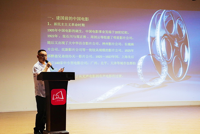观影前,杨馆长以《红色电影文化》为题,从红色经典电影的基本内涵引入,详细地分析了不同时期,红色电影的不同表现形式以及红色电影弘扬的爱国主义、革命英雄主义和集体主义精神。同时,向同学们介绍了《红色娘子军》电影内容发生的背景,使同学们在观影前对红色电影有了进一步的认识。