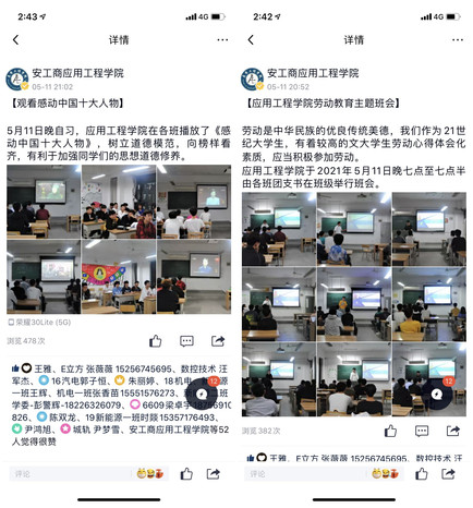 劳动周中,各班级通过开展主题班会教育,全面学习习近平总书记关于劳动的重要论述,深化学生对马克思主义劳动观的认识。学生们表示“主题班会让我明白要从劳动中学会感恩、学会反思、学会审美。作为当代大学生,要大力学习和弘扬劳模精神,更需脚踏实地担当时代重任。”