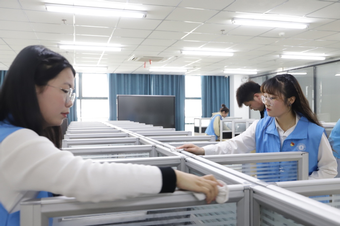 活动中,全体志愿者们身着蓝色马甲集体行动,充分展现了不怕脏、不怕苦、不怕累,敢于冲在前面、敢于抢挑重担的精神风貌,对实训室地面进行了清扫,对仪器设备和家具进行了清洁和维护。大家热情高涨,互帮互助,通过一下午的努力将实训室整理的井井有条。