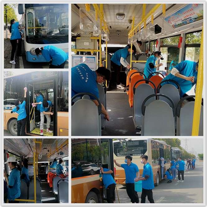 来到公交公司后,简单分工后,同学们以饱满地热情投入到劳动中,擦车窗、擦扶手、拖地板、洗车身……同学们分工合作、井然有序,仔细的清洗擦拭每个角落,不放过任何死角,清洁工作有条不紊,认真完成每辆公交车的保洁清洗,用实际行动传递团结、友爱、互助、奉献的雷锋精神,看着一辆辆“灰头土脸”的公交转眼间焕然一新,再次“精神抖擞”地驶出车站,同学们虽然满脸汗水,神色疲惫,但心里却充满欣慰。