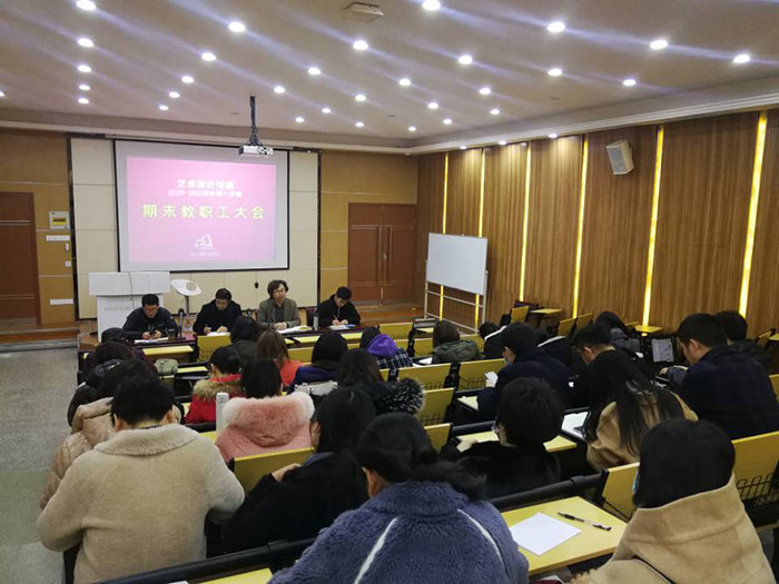 1月20日下午,艺术设计学院在庐阳校区闻道楼第一学术报告厅召开了艺术设计学院期末教职工大会。会议主要围绕期末工作任务布置及要求,教学诊改工作推进,学院“十四五”规划编制三项工作进行部署。学院总书记、院长领导孔成,副书记、副院长哈春浪及全院教职工出席了会议,会议由孔成主持。