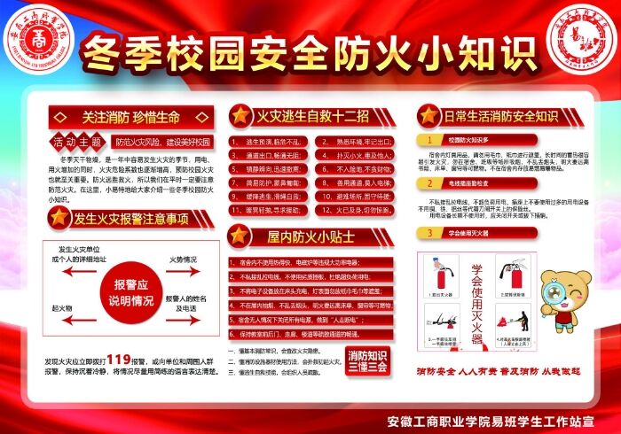 2020年12月下旬,为迎接安徽工商职业学院70周年校庆,我校易班学生工作站积极开展“安全防火迎新年,平安校园贺校庆”活动。