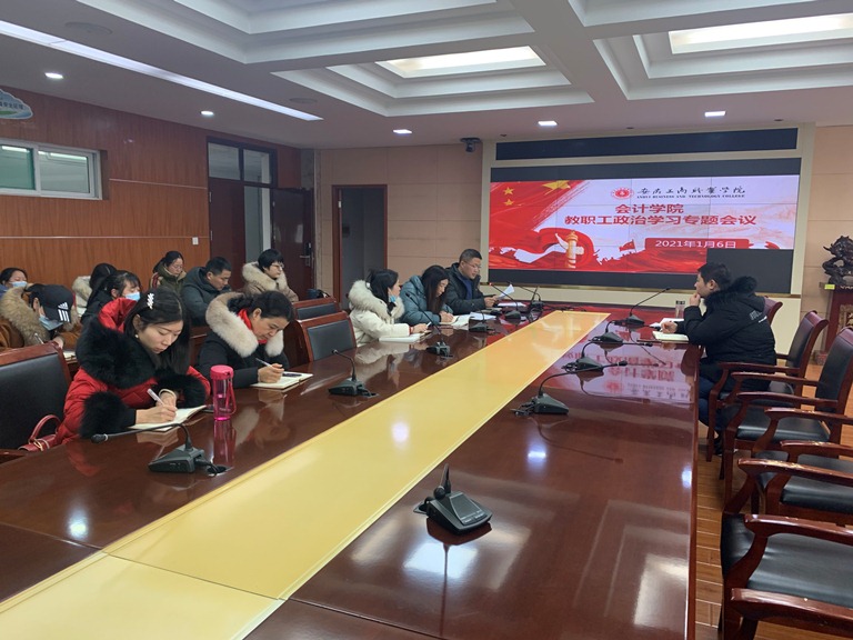 1月6日下午,为积极落实校党委工作安排部署,深入贯彻政治学习日活动精神,会计学院党总支在明德楼2号会议室开展教职工政治学习日活动,深入学习研讨习近平总书记在中共中央政治局民主生活会上的重要讲话精神和《习近平总书记教育重要论述讲义》。全体教职工参加了学习,活动由党总支副书记杨锐主持。