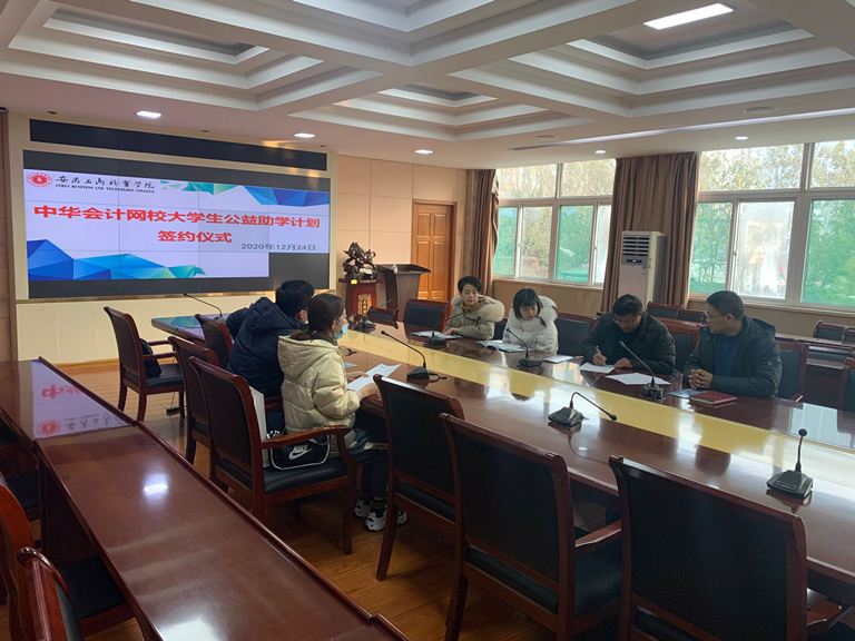 2020年12月24日,会计学院与中华会计网校在明德楼2号会议室举行“大学生助学计划校园公益项目签约仪式,出席仪式的有会计学院院长高克智、党总支副书记杨锐、教务科长费玄淑、中华会计网校校园业务部经理李晓蕾等。