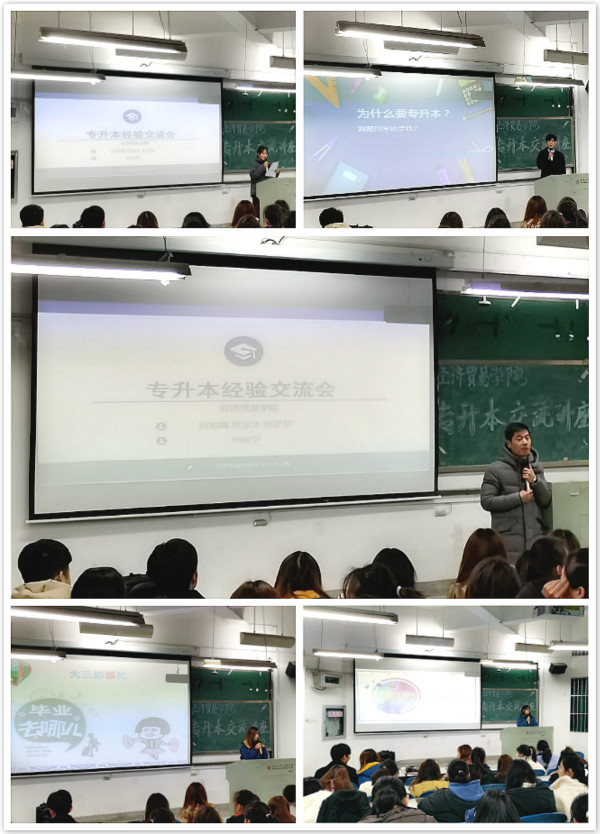 为帮助同学们了解更多专升本信息,做好未来的学习规划,12月14日,经济贸易学院在第八多媒体教室举办了专升本交流会。此次交流会,邀请到来自安徽财经大学国贸GS班的陈冰冰、吕雨晴和张梦梦三位同学为同学们介绍专升本相关问题,150余名2020级新生参加了本次交流会。