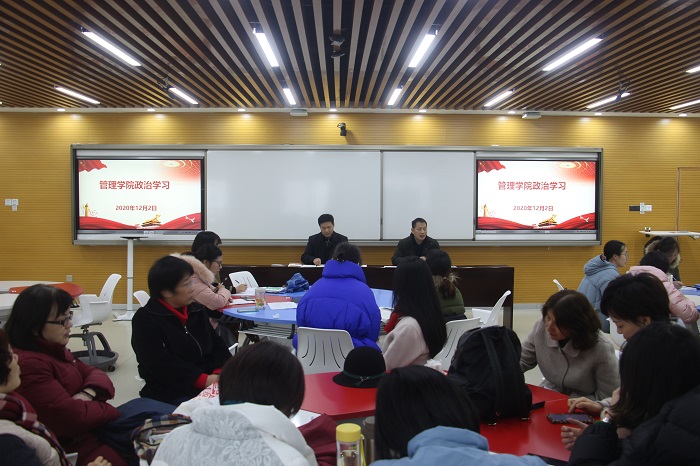 为进一步提升学院教职工队伍的政治素质,深入贯彻落实高校立德树人根本任务,12月2日下午,根据学校计划安排,管理学院在学院智慧教室举行政治学习日活动,全体教职工参加,学习会由学院党总支书记曹大友主持。