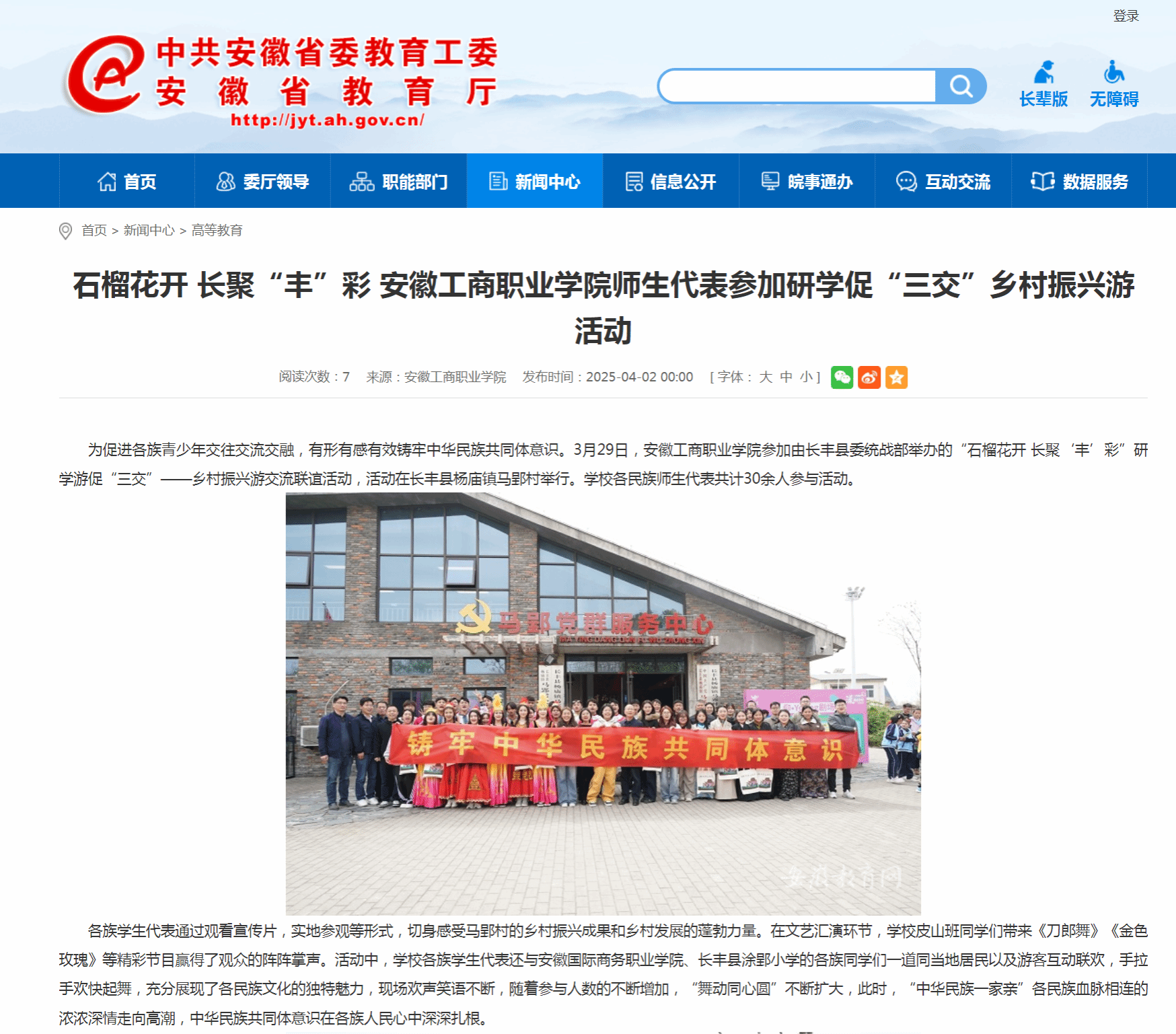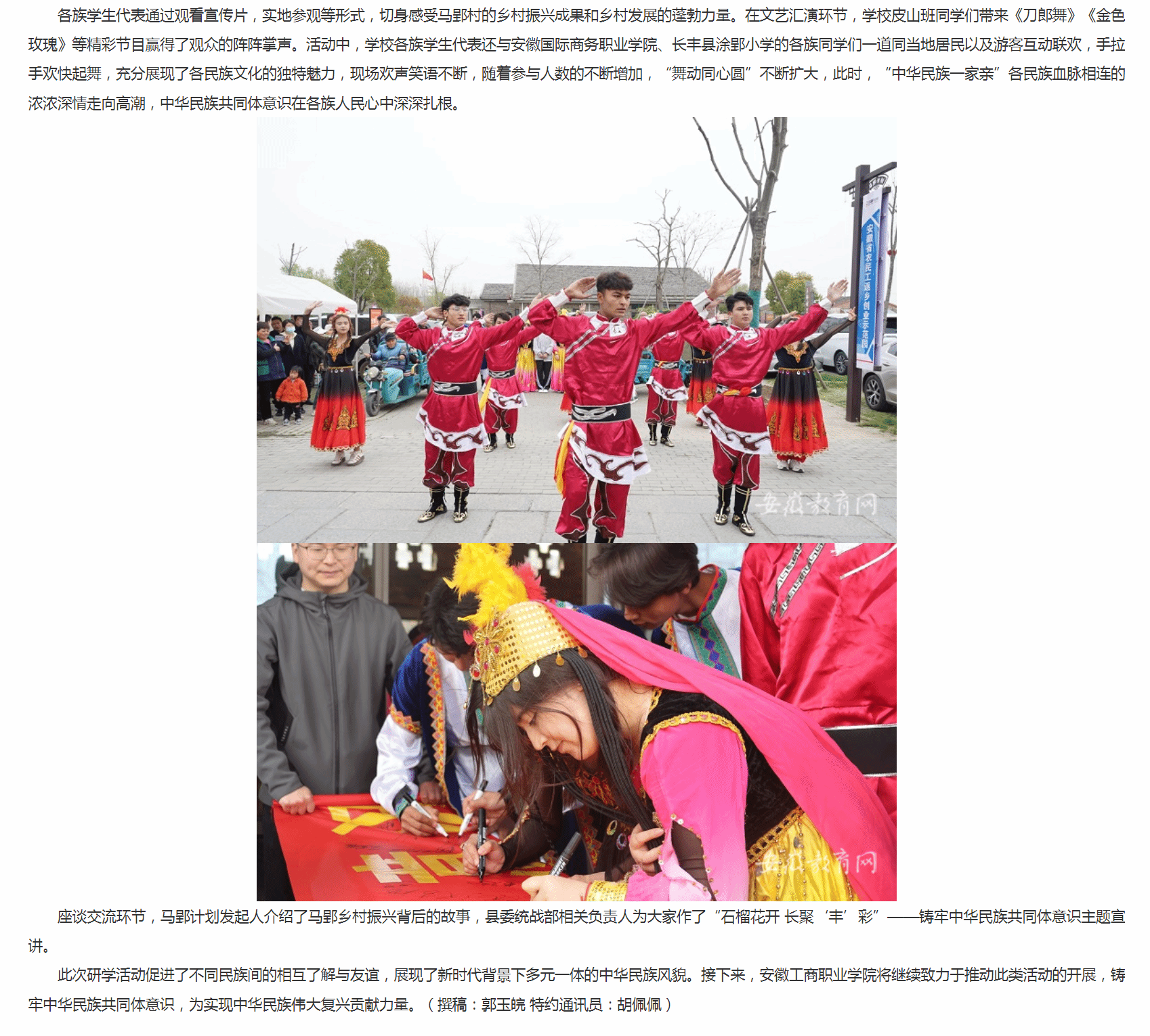 原文链接:【安徽教育网】 报道:石榴花开 长聚“丰”彩 安徽工商职业学院师生代表参加研学促“三交”乡村振兴游活动