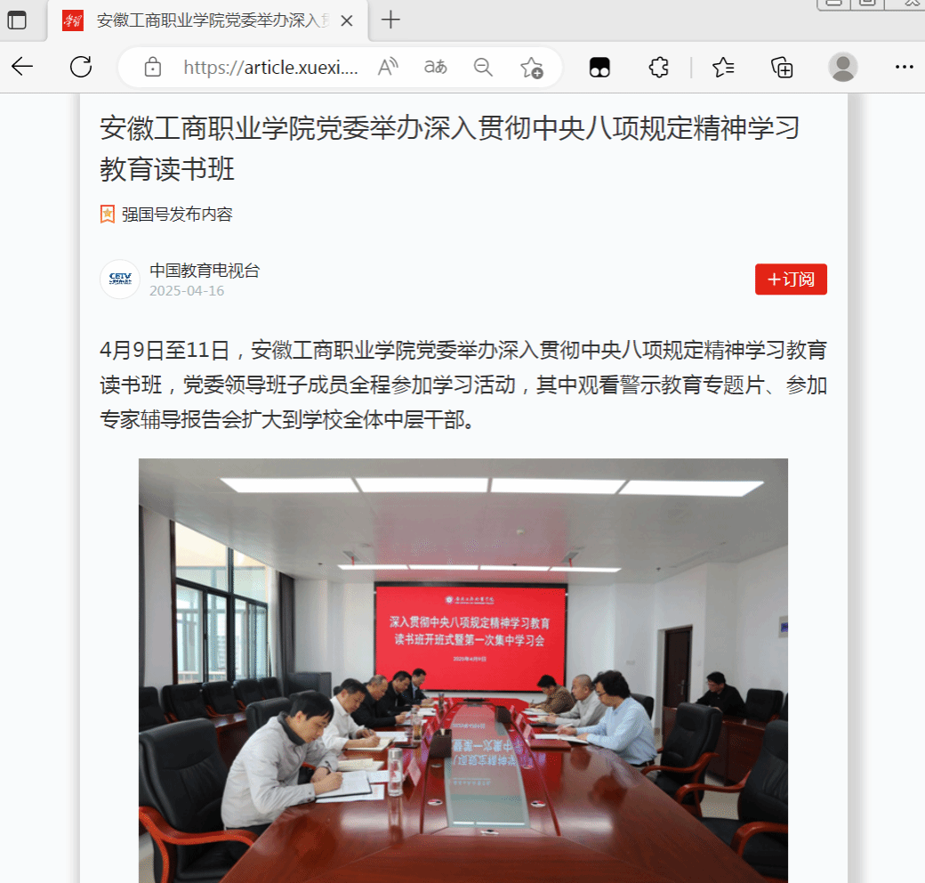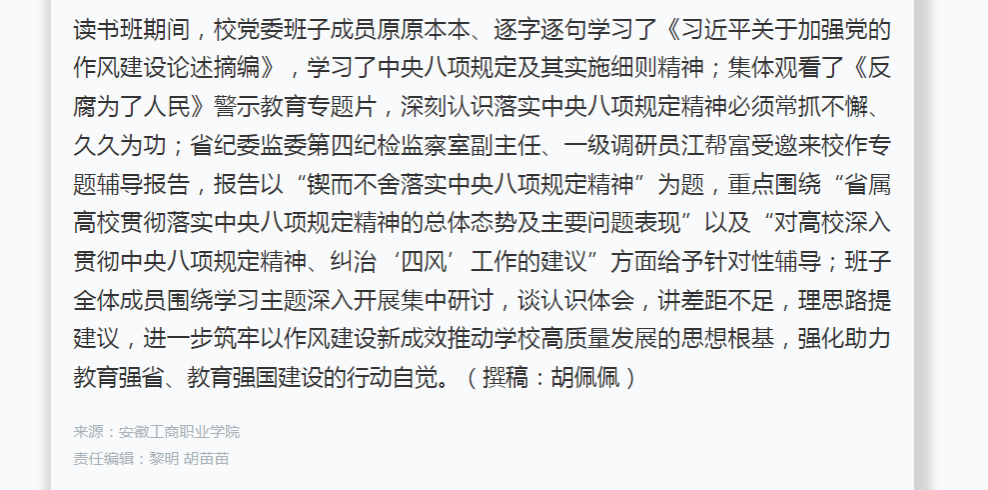 原文链接:【学习强国】 报道:安徽工商职业学院党委举办深入贯彻中央八项规定精神学习教育读书班
