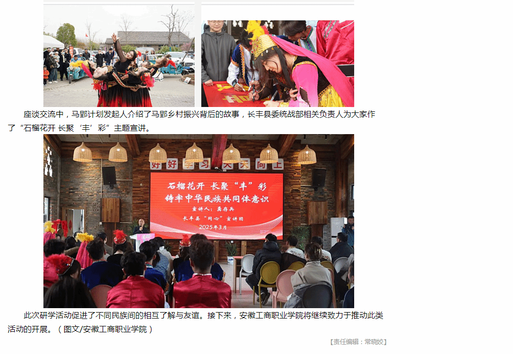 原文链接:【中国网】报道:“石榴花开 长聚‘丰’彩”——安徽工商职业学院师生代表参加研学促“三交”乡村振兴游活动