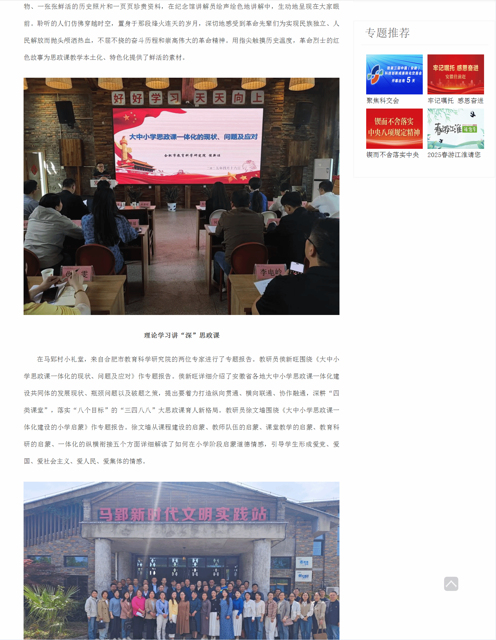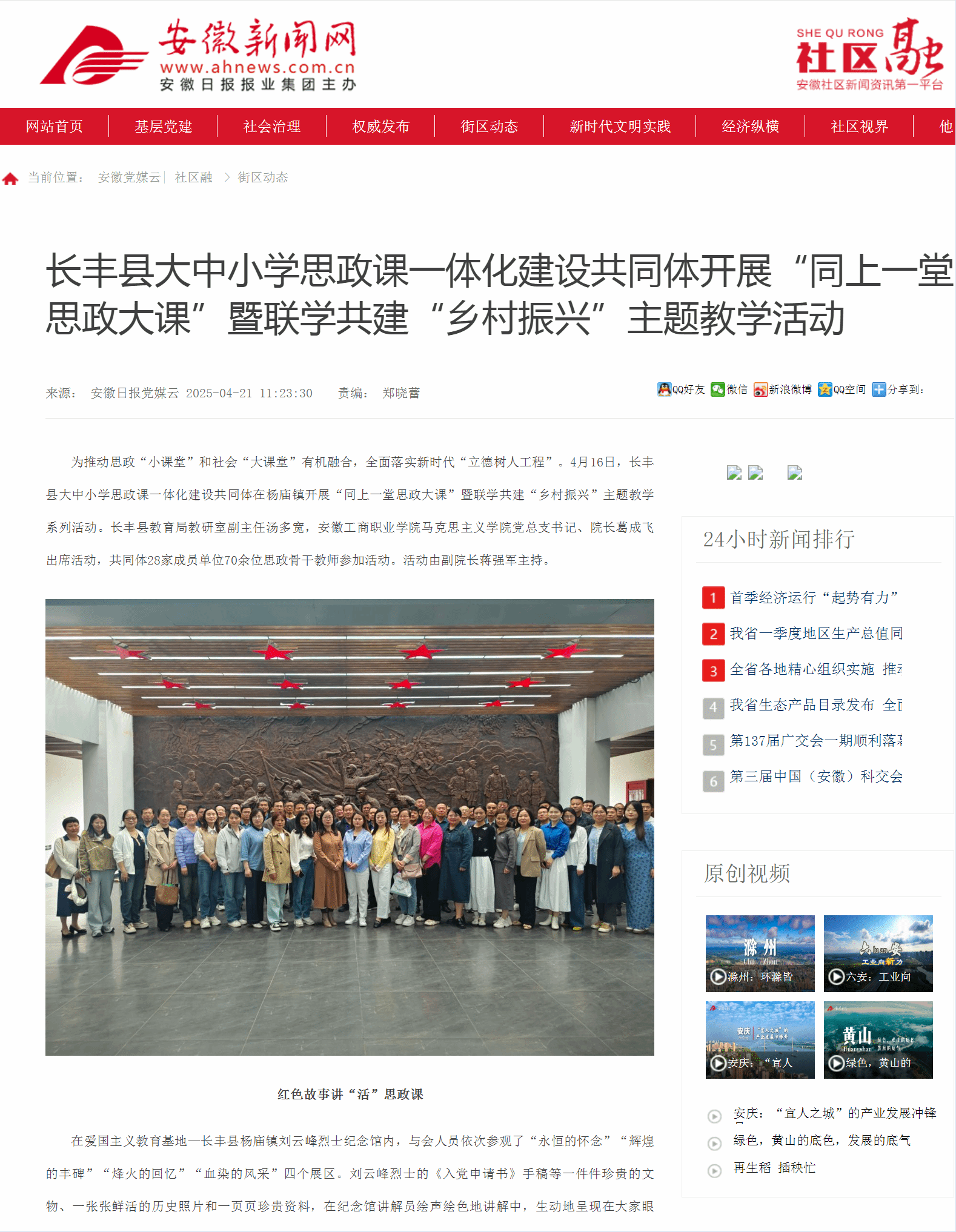 原文链接:【安徽新闻网】 报道:长丰县大中小学思政课一体化建设共同体开展“同上一堂思政大课”暨联学共建“乡村振兴”主题教学活动