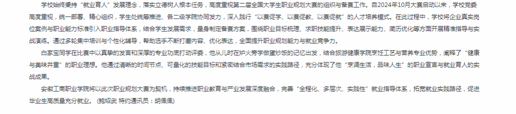 原文链接:【安徽教育网】 报道:安徽工商职业学院在第二届全国大学生职业规划大赛全国总决赛荣获佳绩