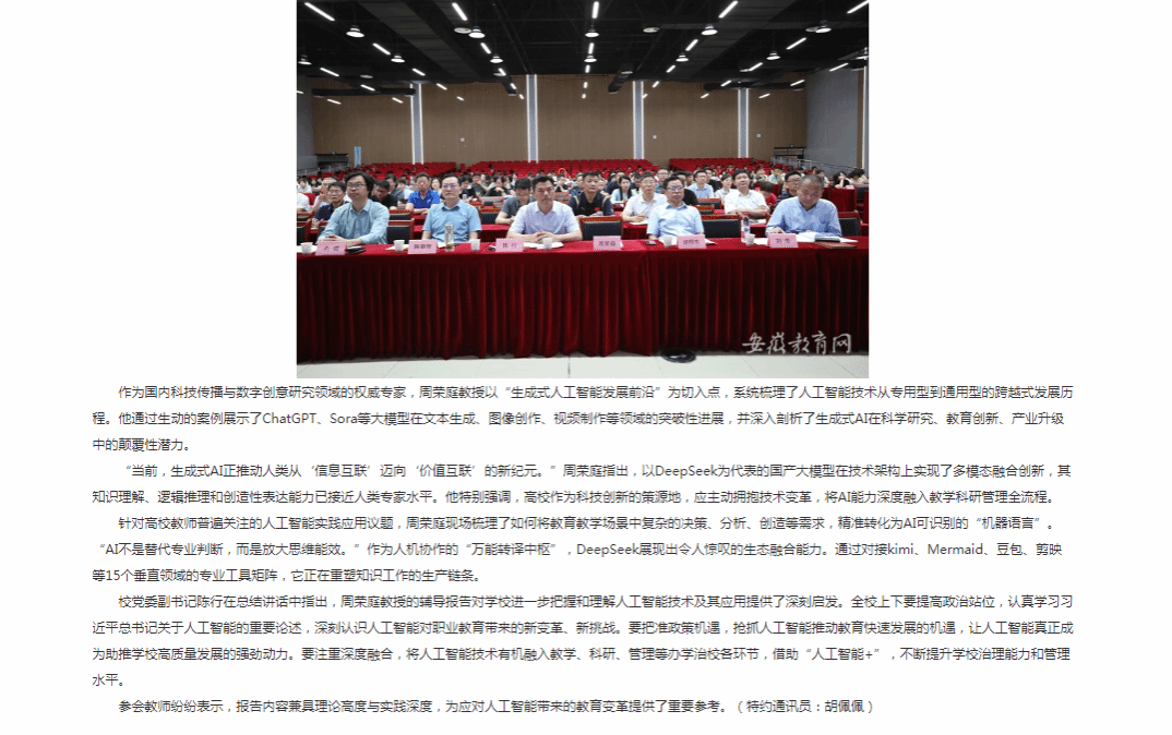 原文链接:【安徽教育网】报道:安徽工商职业学院党委第六次理论学习中心组学习(扩大)会聚焦生成式AI与DeepSeek创新实践