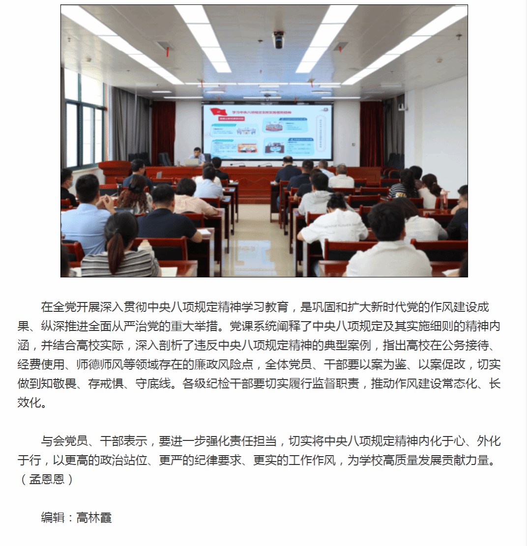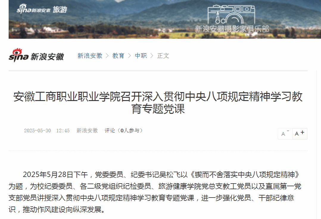 原文链接:【新浪安徽】报道:安徽工商职业职业学院召开深入贯彻中央八项规定精神学习教育专题党课