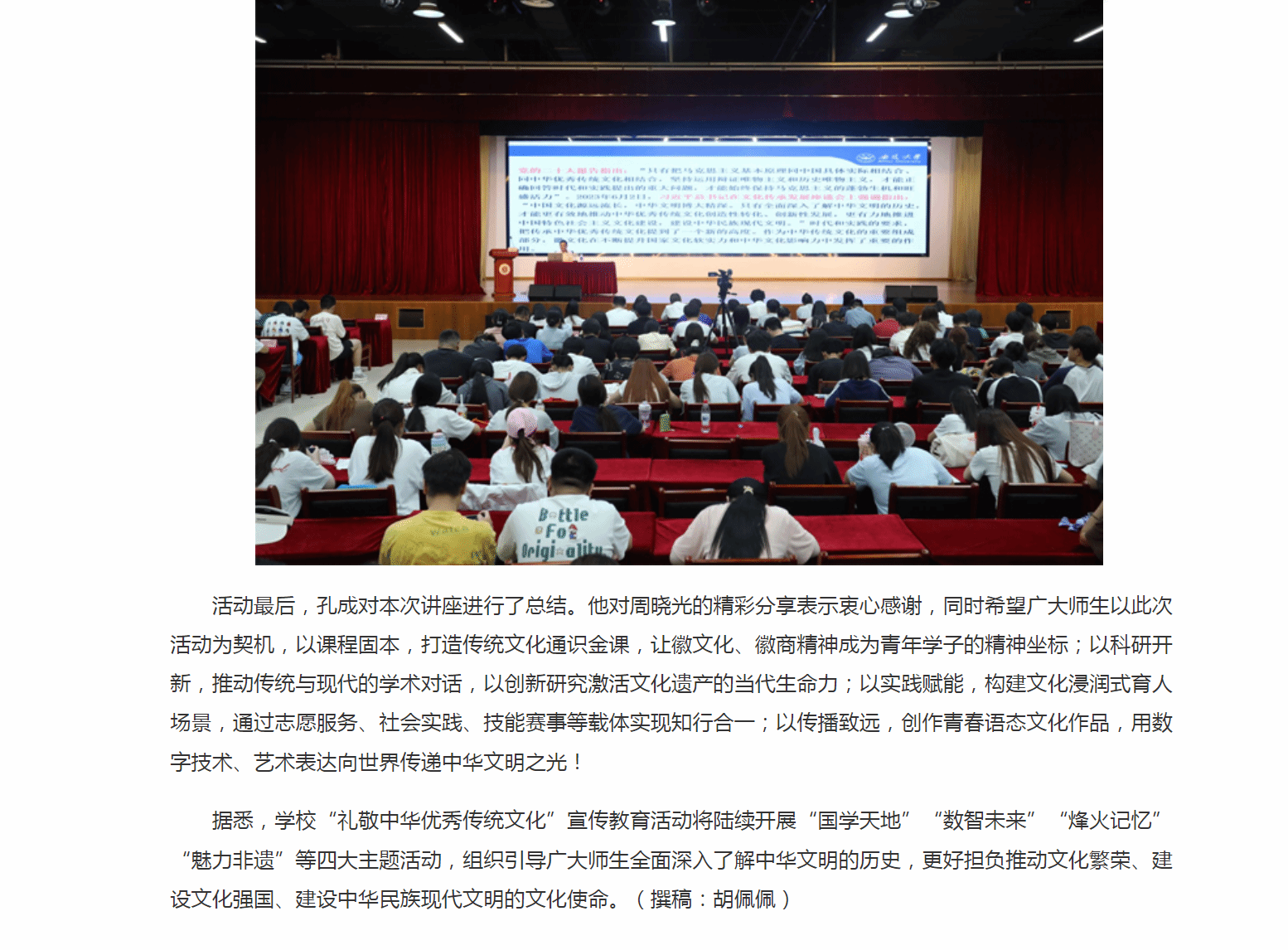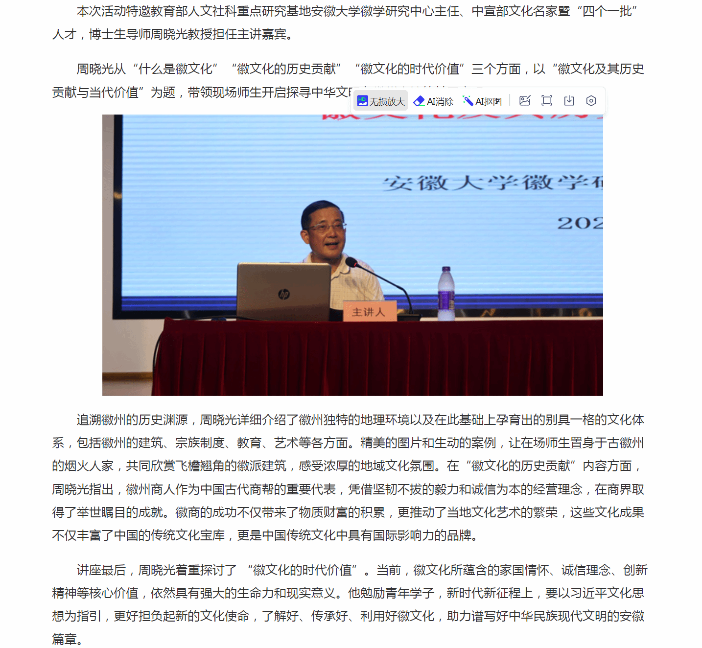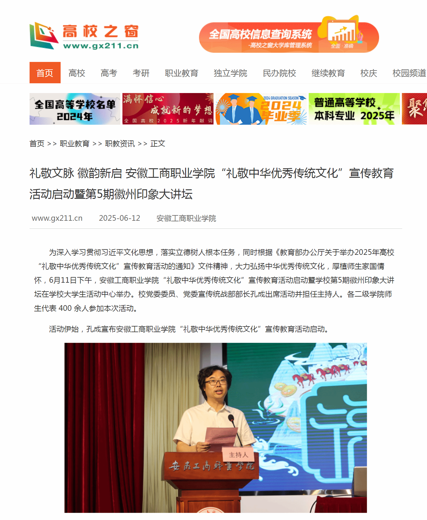 原文链接:【高校之窗】报道:礼敬文脉 徽韵新启 安徽工商职业学院“礼敬中华优秀传统文化”宣传教育活动启动暨第5期徽州印象大讲坛
