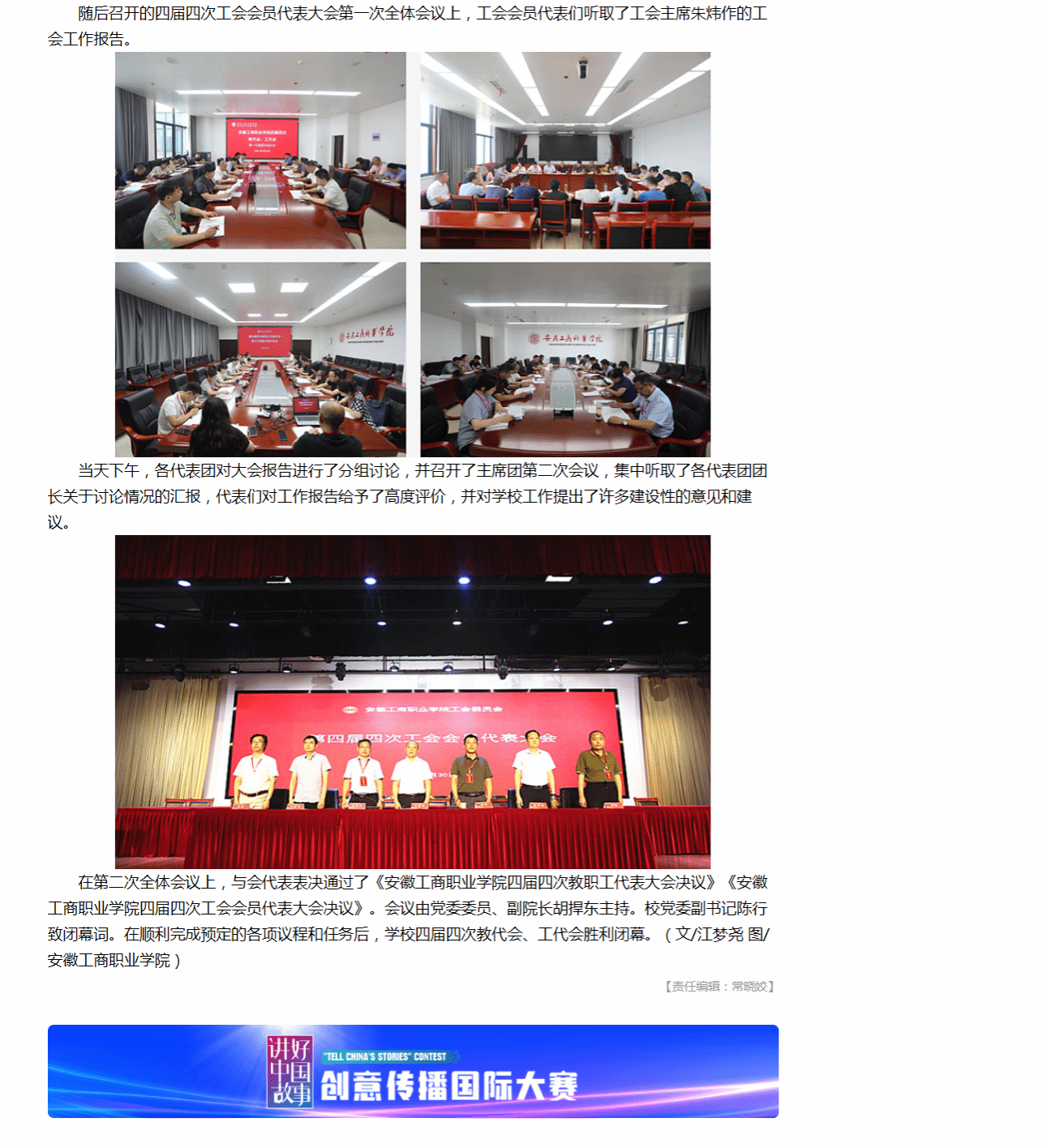 原文链接:【中国网】报道:安徽工商职业学院第四届教职工、工会会员代表大会第四次会议胜利召开