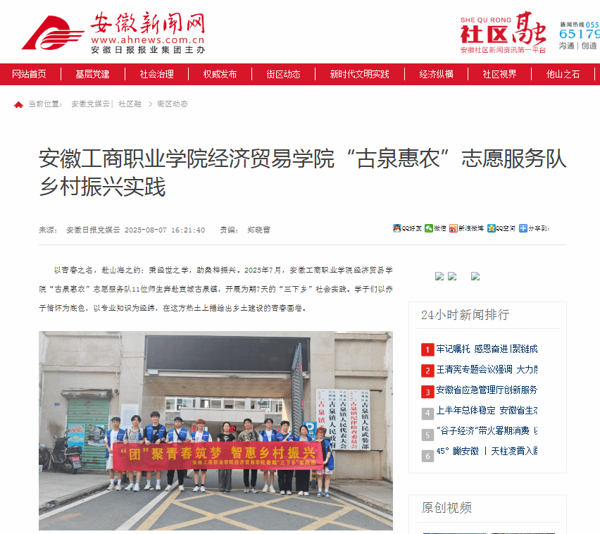 原文链接:【安徽新闻网】报道:安徽工商职业学院经济贸易学院“古泉惠农”志愿服务队乡村振兴实践