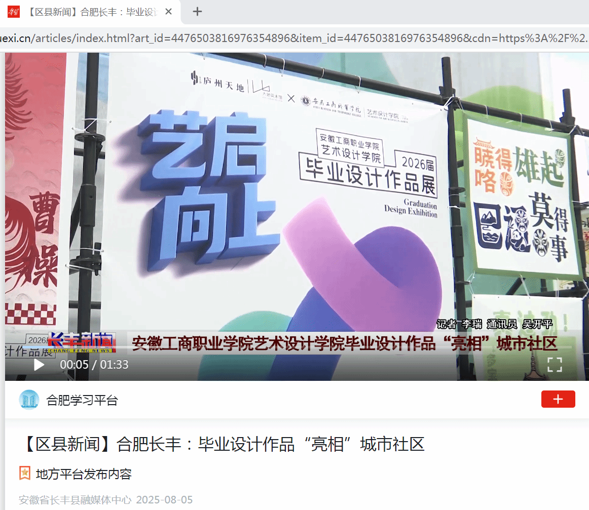 原文链接:【学习强国】区县新闻报道:合肥长丰:(安徽工商职业学院艺术设计学院)毕业设计作品“亮相”城市社区