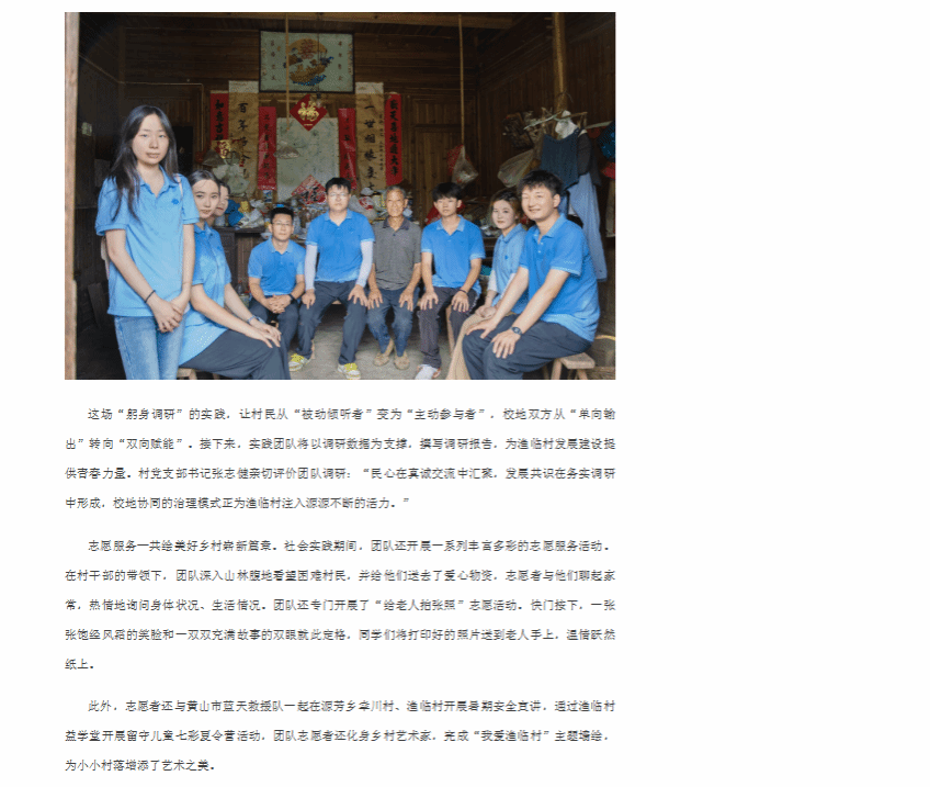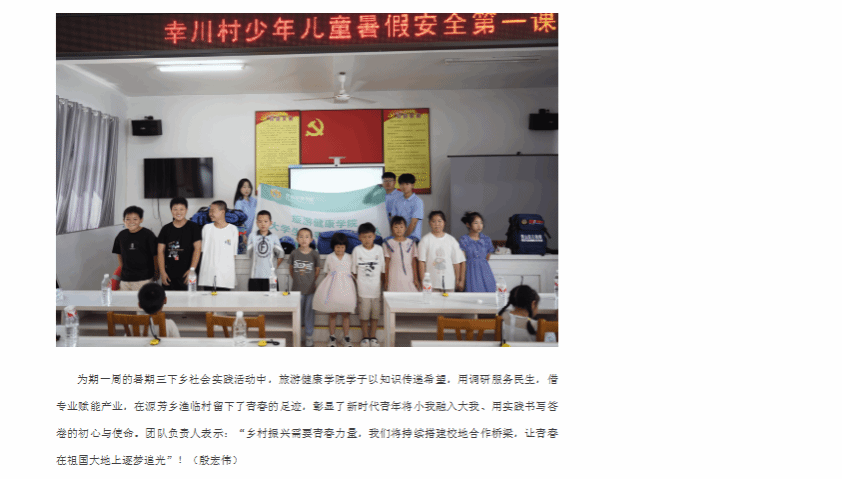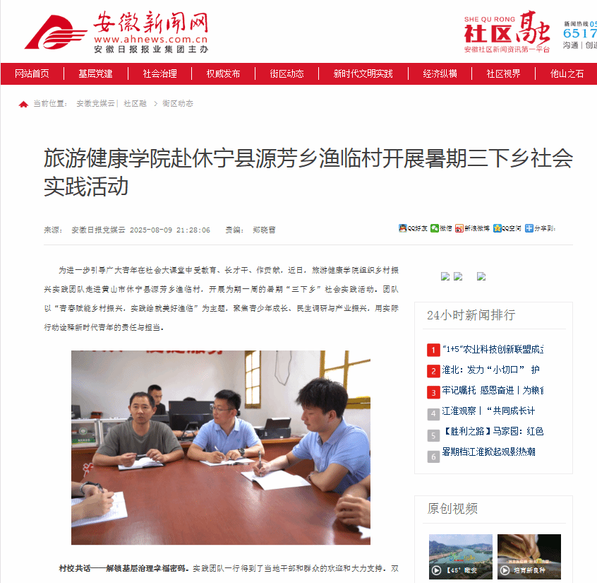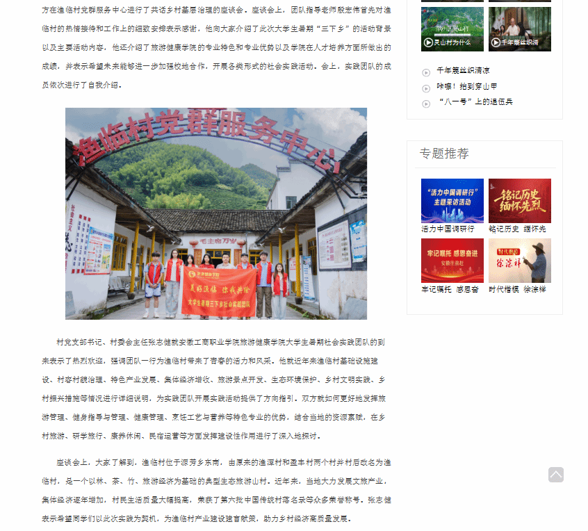 原文链接:【安徽新闻网】报道:旅游健康学院赴休宁县源芳乡渔临村开展暑期三下乡社会实践活动