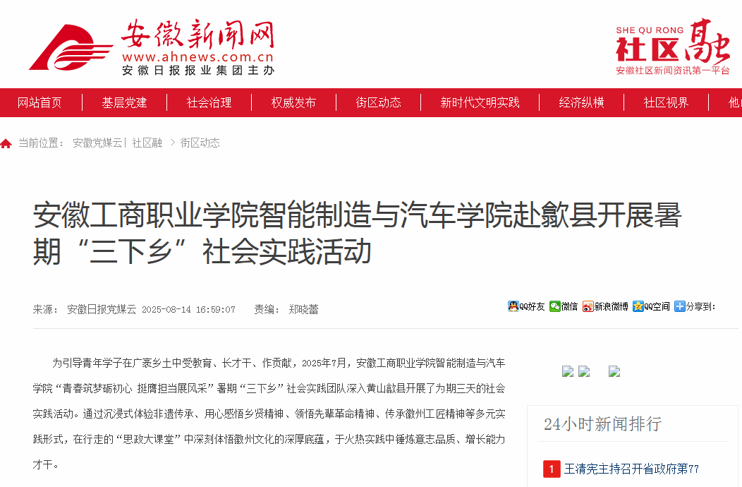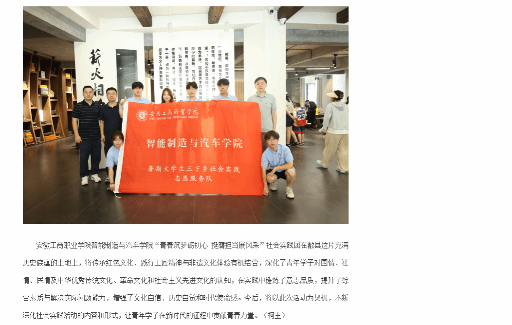 原文链接:【安徽新闻网】报道:安徽工商职业学院智能制造与汽车学院赴歙县开展暑期“三下乡”社会实践活动