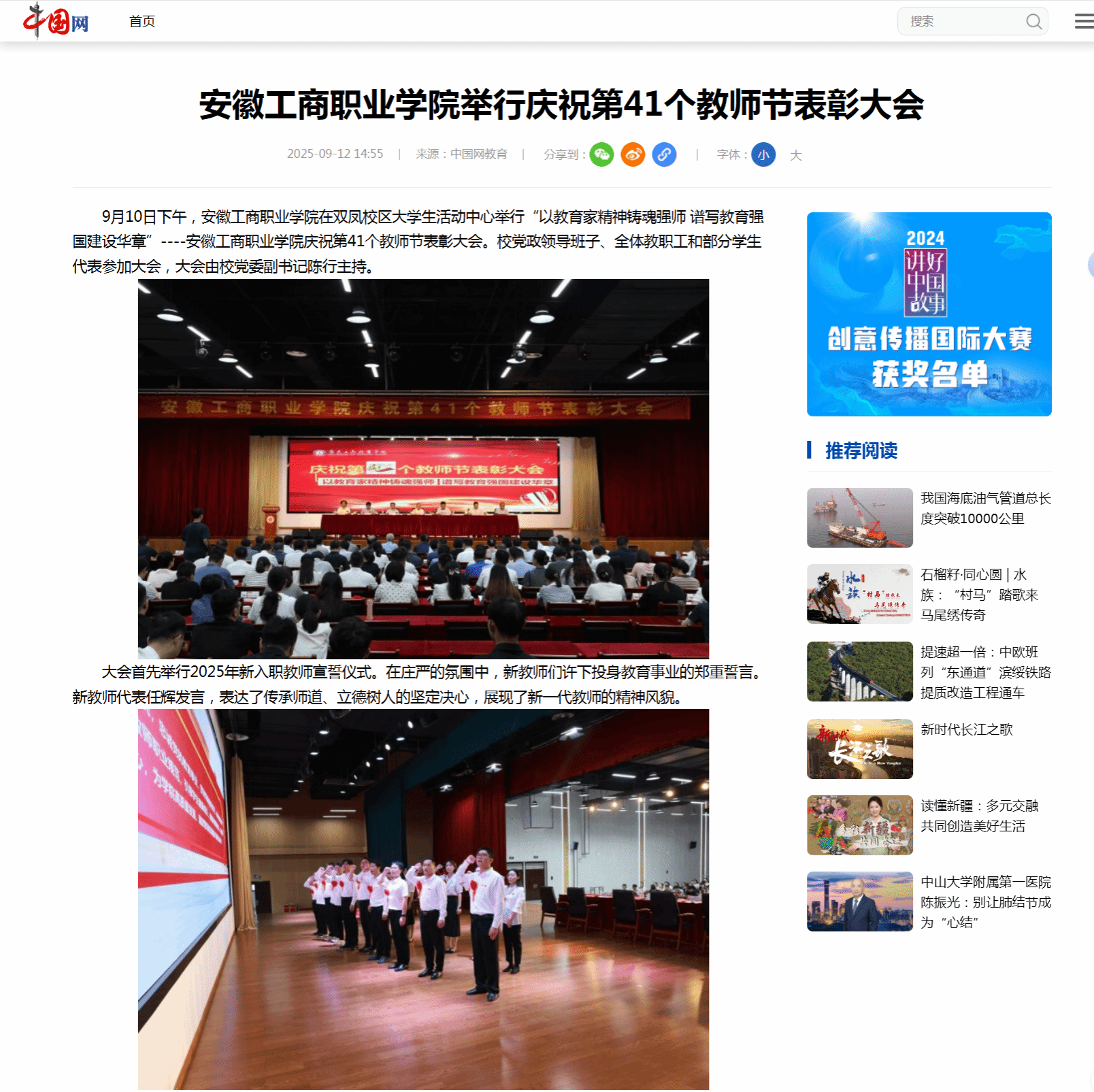 原文链接:【中国网】报道:安徽工商职业学院举行庆祝第41个教师节表彰大会