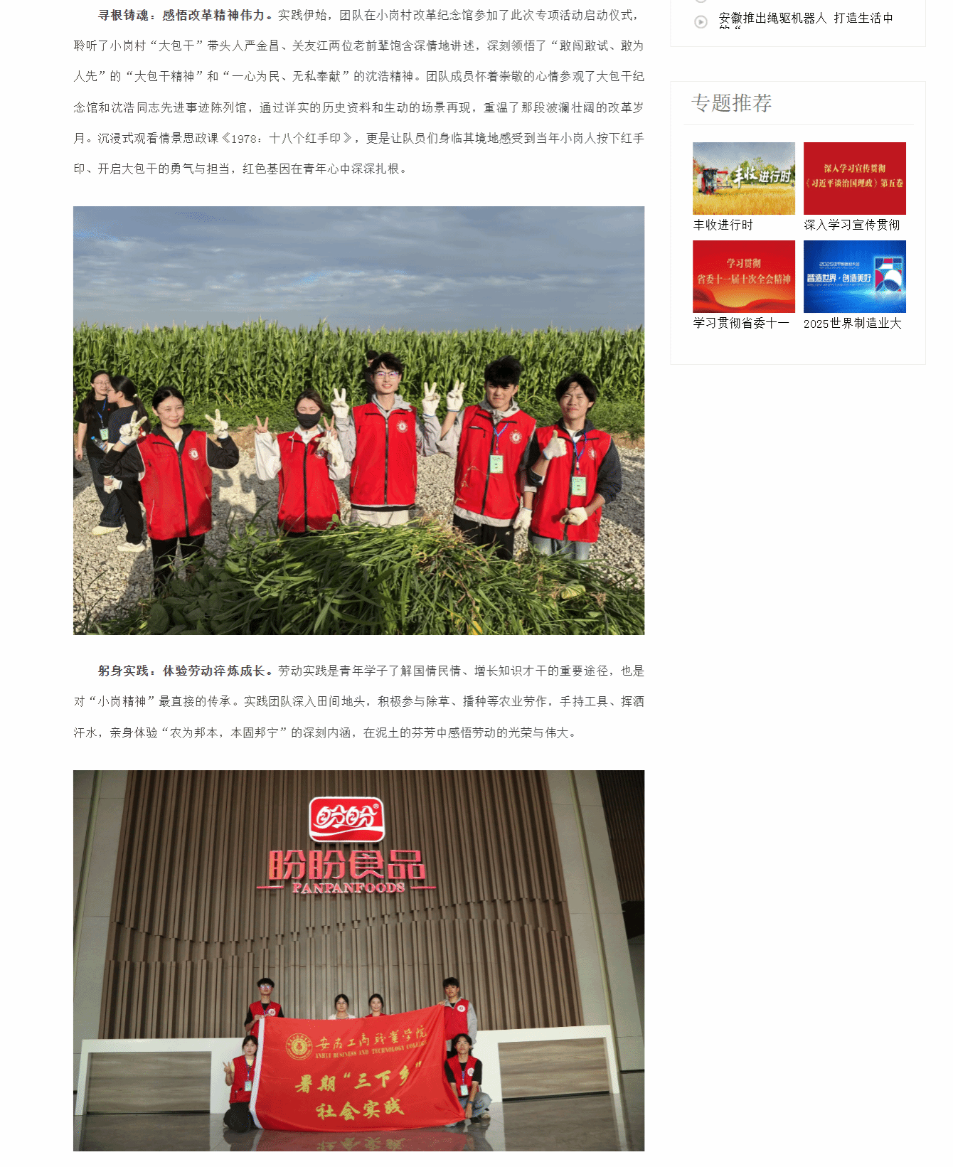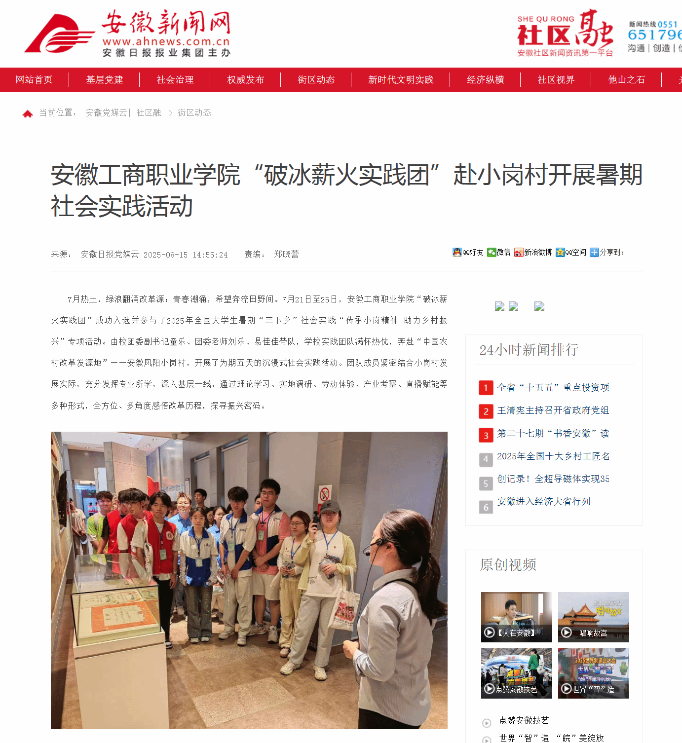 原文链接:【安徽新闻网】报道:安徽工商职业学院“破冰薪火实践团”赴小岗村开展暑期社会实践活动