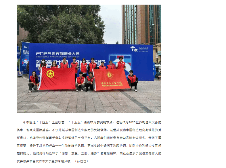原文链接:【安徽新闻网】报道:安徽工商职业学院青年志愿者闪耀2025世界制造业大会