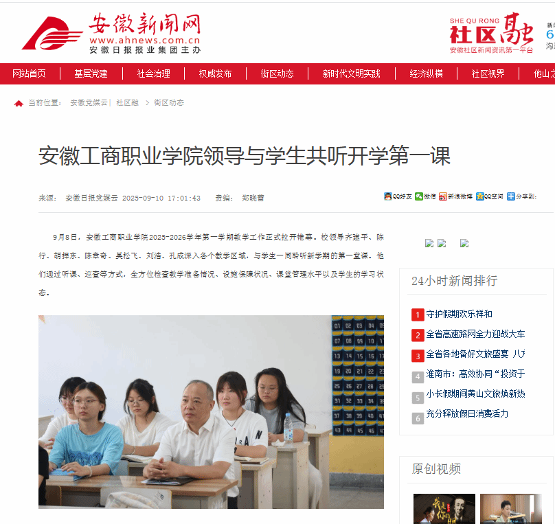 下一条: 【安徽日报客户端】报道:安徽工商职业学院领导与学生共听开学第一课