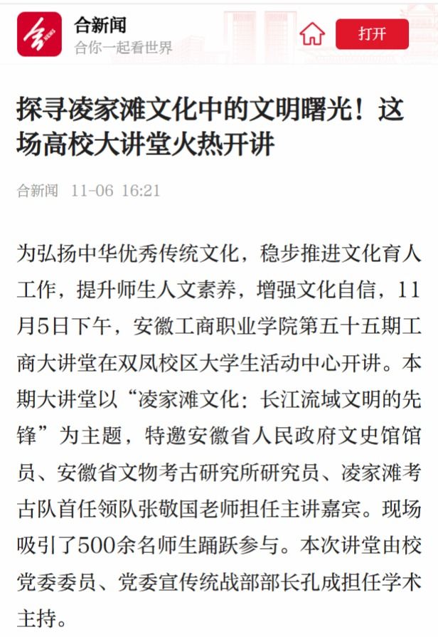 原文链接:【合新闻】报道:探寻凌家滩文化中的文明曙光!这场高校大讲堂火热开讲