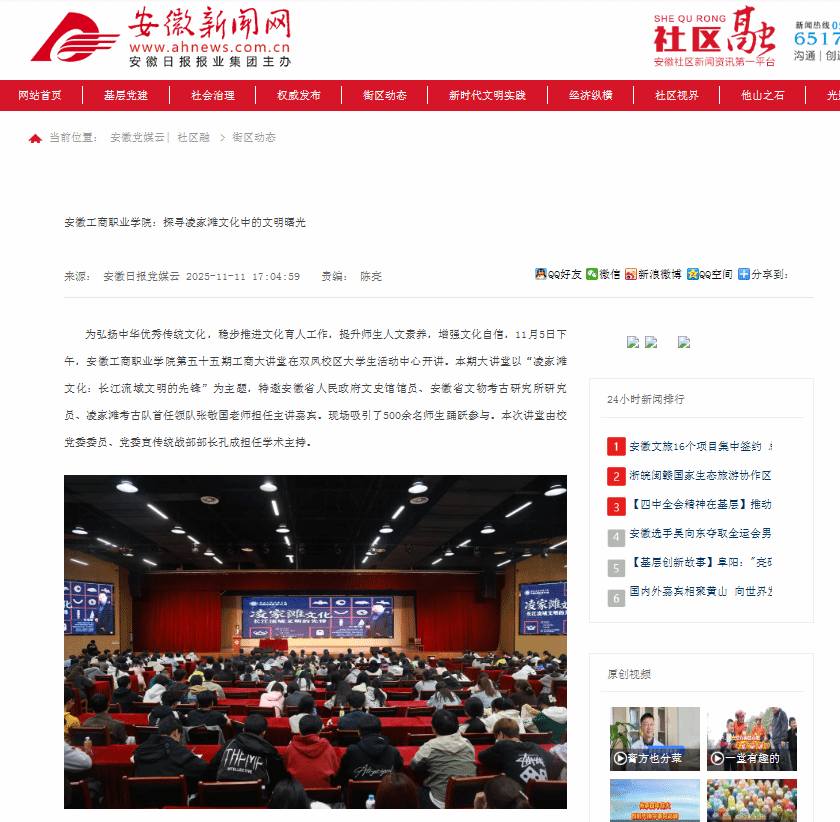 【安徽新闻网】报道:安徽工商职业学院:探寻凌家滩文化中的文明曙光