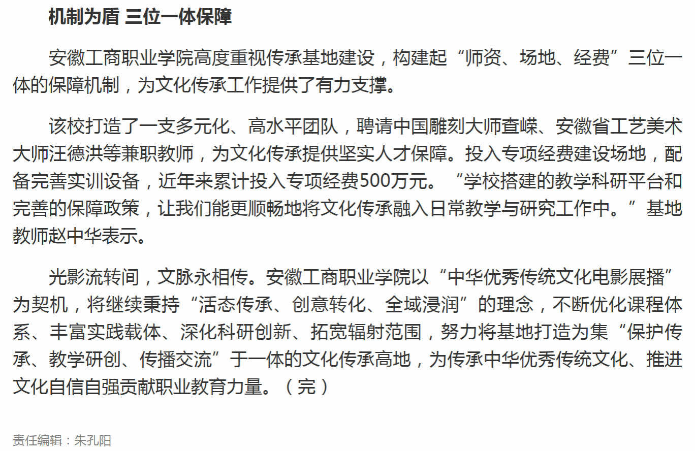 原文链接:【中国新闻网】报道:安徽工商职业学院以多元实践铸就中华优秀传统文化传承基地