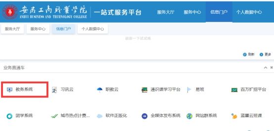 (三)搜索安徽工商职业学院官网,首页右上角点击信息门户,输入账号密码即可登录。