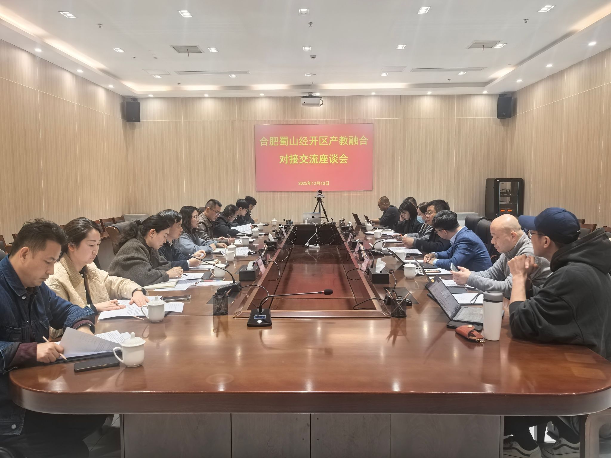 2025年12月10日,合肥蜀山经开区产教融合对接交流会在蜀山经开区数字经济展厅会议室举行。会议以“探讨高校与企业人才服务发展可持续性”为核心,旨在搭建校企人才培养合作桥梁,推动区域产教深度融合。蜀山经开区社会事务处处长陈澍主持会议,我校智能制造与汽车学院副院长任远林、教务处王芸应邀参会,上海燧原科技有限公司、高科集团、安徽新闻出版职业技术学院、新华集团等单位共同参会。