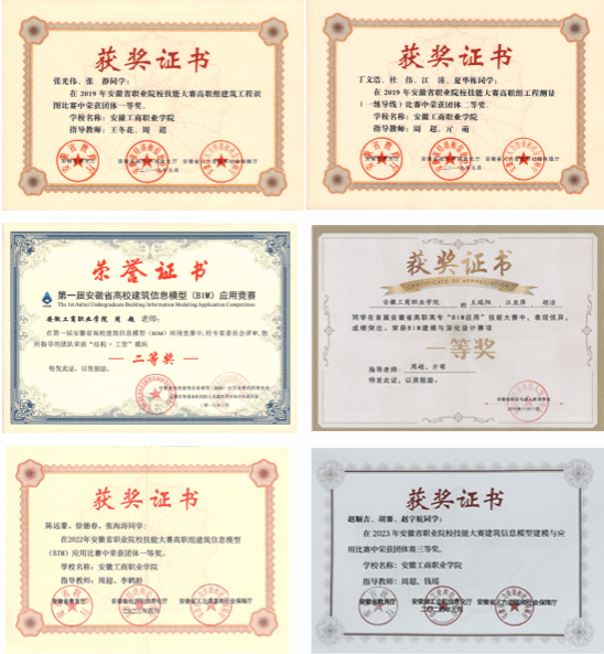 2023年获安徽省职业院校技能大赛“建设工程数字化计量与计价”三等奖2项。