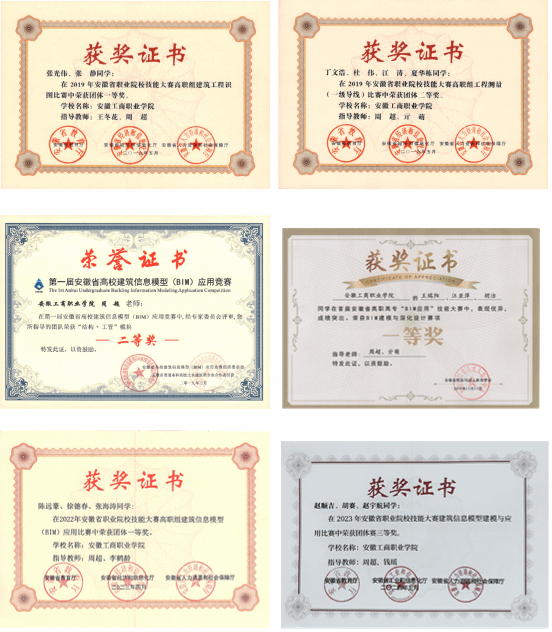 2023年获安徽省职业院校技能大赛“建设工程数字化计量与计价”三等奖2项。
