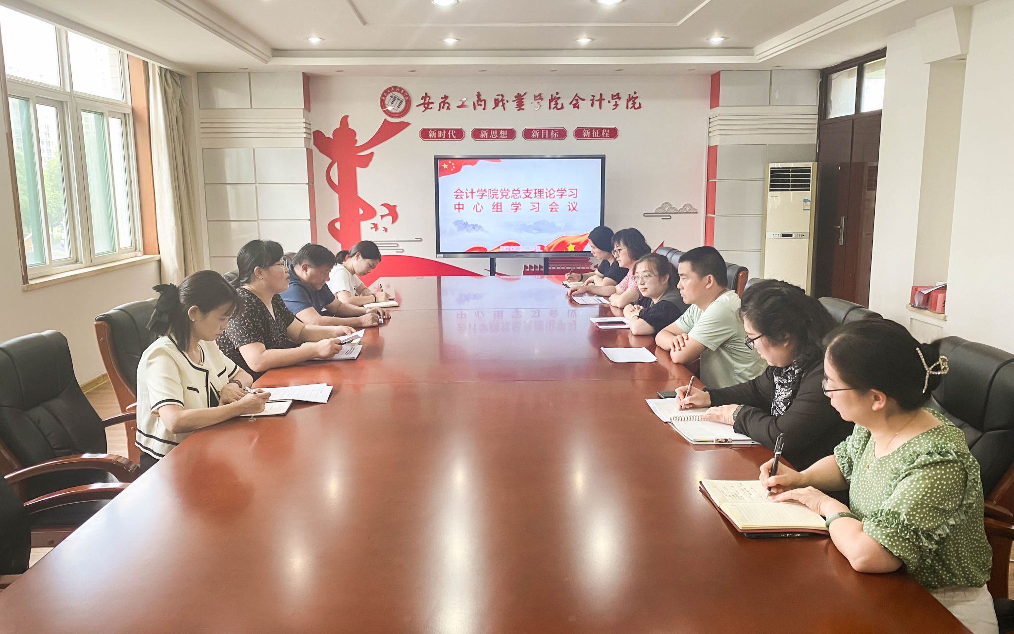 7月13日下午,会计学院在党建会议室召开理论学习中心组(扩大)学习会。会议由学院党总支书记赵艳主持,院长高克智、党总支委员及教研室主任参加了会议。