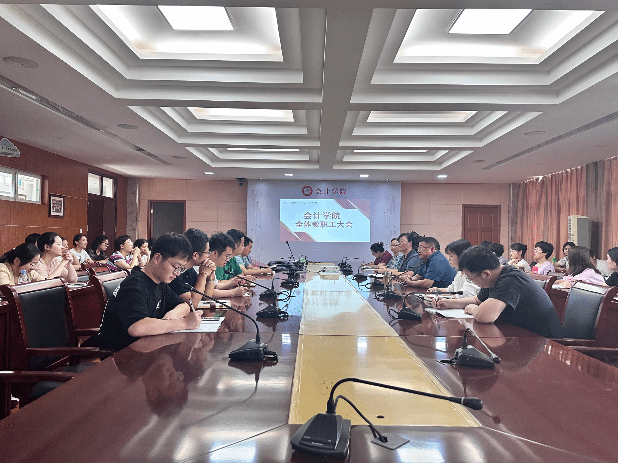 9月6日下午,会计学院在明德楼二号会议室召开了教职工政治理论学习暨新学期全体教职工大会,学习贯彻校领导在新学期全体教职工大会上的讲话精神,梳理总结主题教育中好做法好经验好成效,安排部署新学期重点工作。会议由党总支书记赵艳主持,党总支副书记、院长高克智,副院长费玄淑和全体教职工参加了会议。