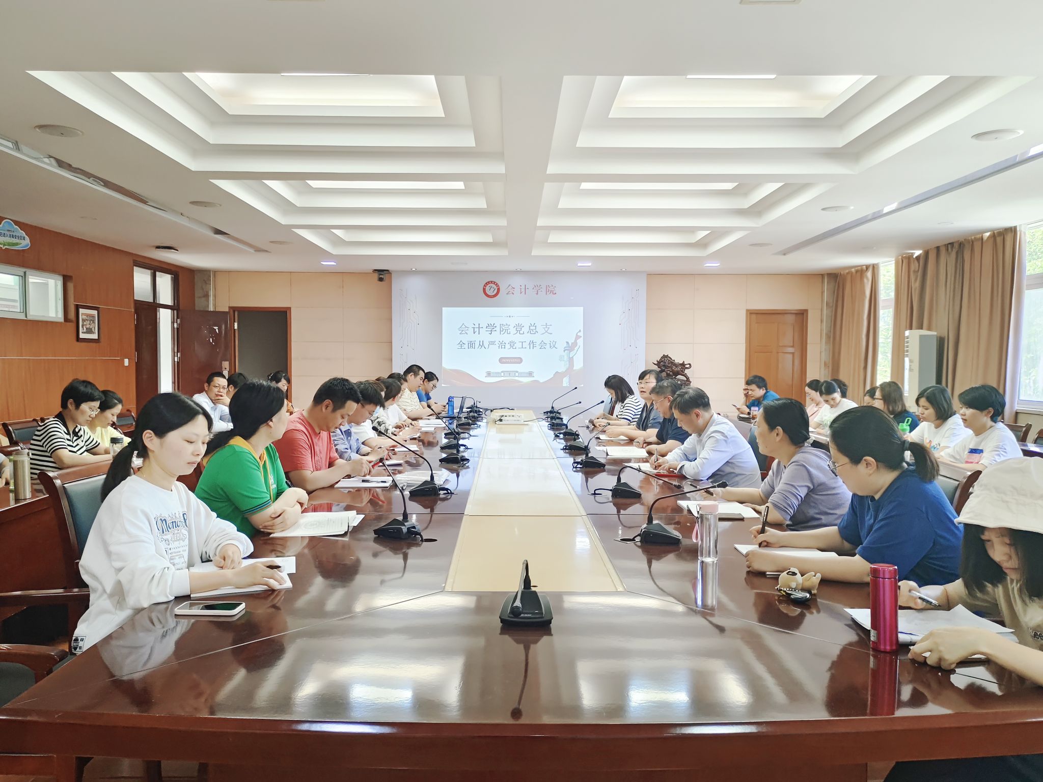 5月15日下午,会计学院党总支在明德楼二号会议室召开2024年全面从严治党专题警示教育会。会议由党总支书记赵艳主持,会计学院全体教师党员参会。