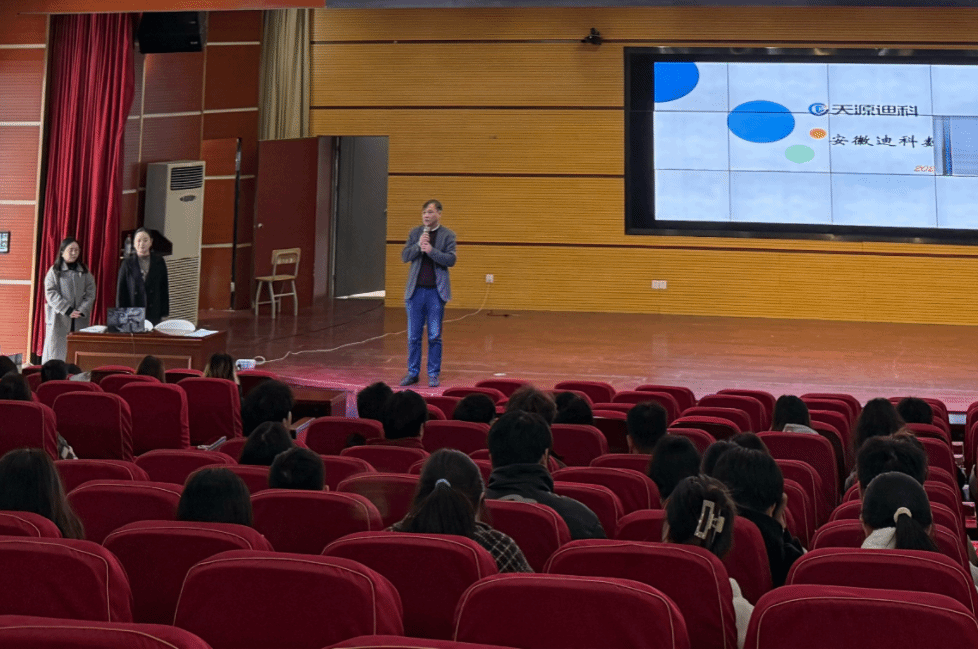 李峰在致辞中提出,就业是学生未来发展的重要基础,也是学校教育成果的显现,鼓励同学们积极了解信息,把握机会,勇敢追求职业理想。随后,各用人单位依次通过 PPT 展示、企业视频以及详细的岗位介绍,全方位地展示各自企业文化、发展历程、业务范围、岗位需求以及福利待遇等。会上,安徽迪科数金科技有限公司解读了企业的人才培养计划,强调了对新员工的个性化发展支持;合肥和君纵达数据科技有限公司则重点分享了岗位需求、招聘要求及对员工发展的支持;校友企业合肥壶涂传媒有限公司作为以“00”后员工为主体的企业,介绍了其独特的企业文化和创新项目,良好的发展前景,激发了同学们的浓厚兴趣。