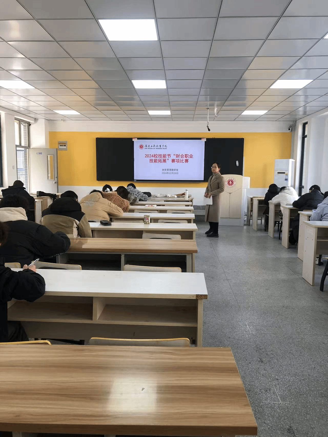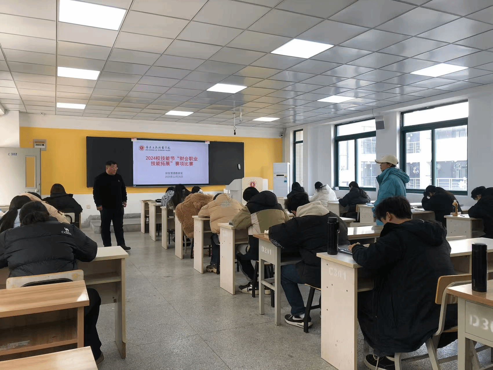 2024年12月26日,安徽工商职业学院第十届技能节“财会职业技能拓展”赛项决赛在双凤校区C302教室举行,会计学院高克智院长亲临决赛现场指导。