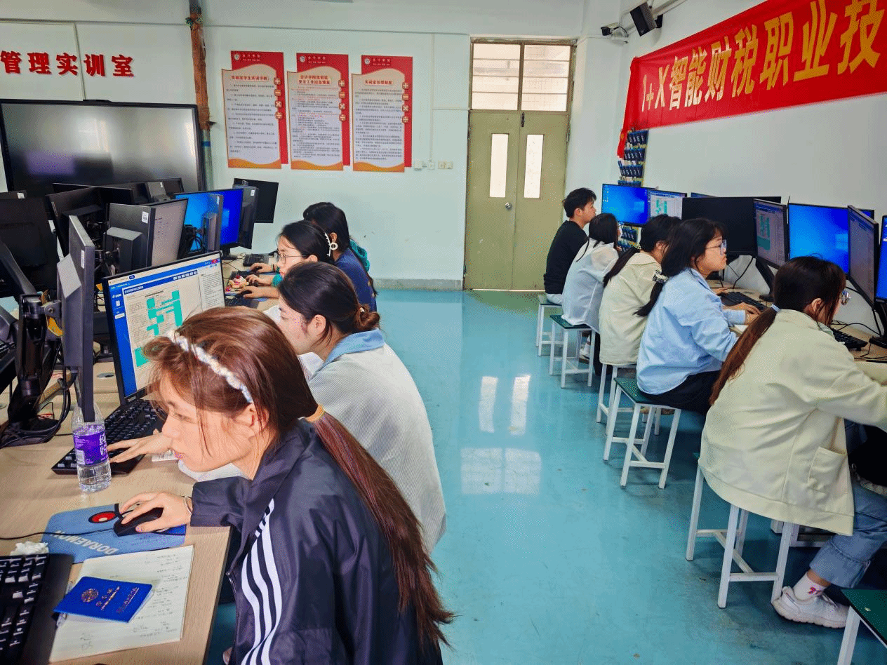 2025年5月24日上午,随着最后一名考生点击提交答卷,我校会计学院组织的 1+X 智能财税(中级)职业技能等级认证考核在紧张有序中落下帷幕。此次考核于教学楼 KJ303、KJ403机房同步展开,80名会计专业学子凭借扎实的专业知识和娴熟的实操技能,顺利完成这场检验专业能力的实战大考。