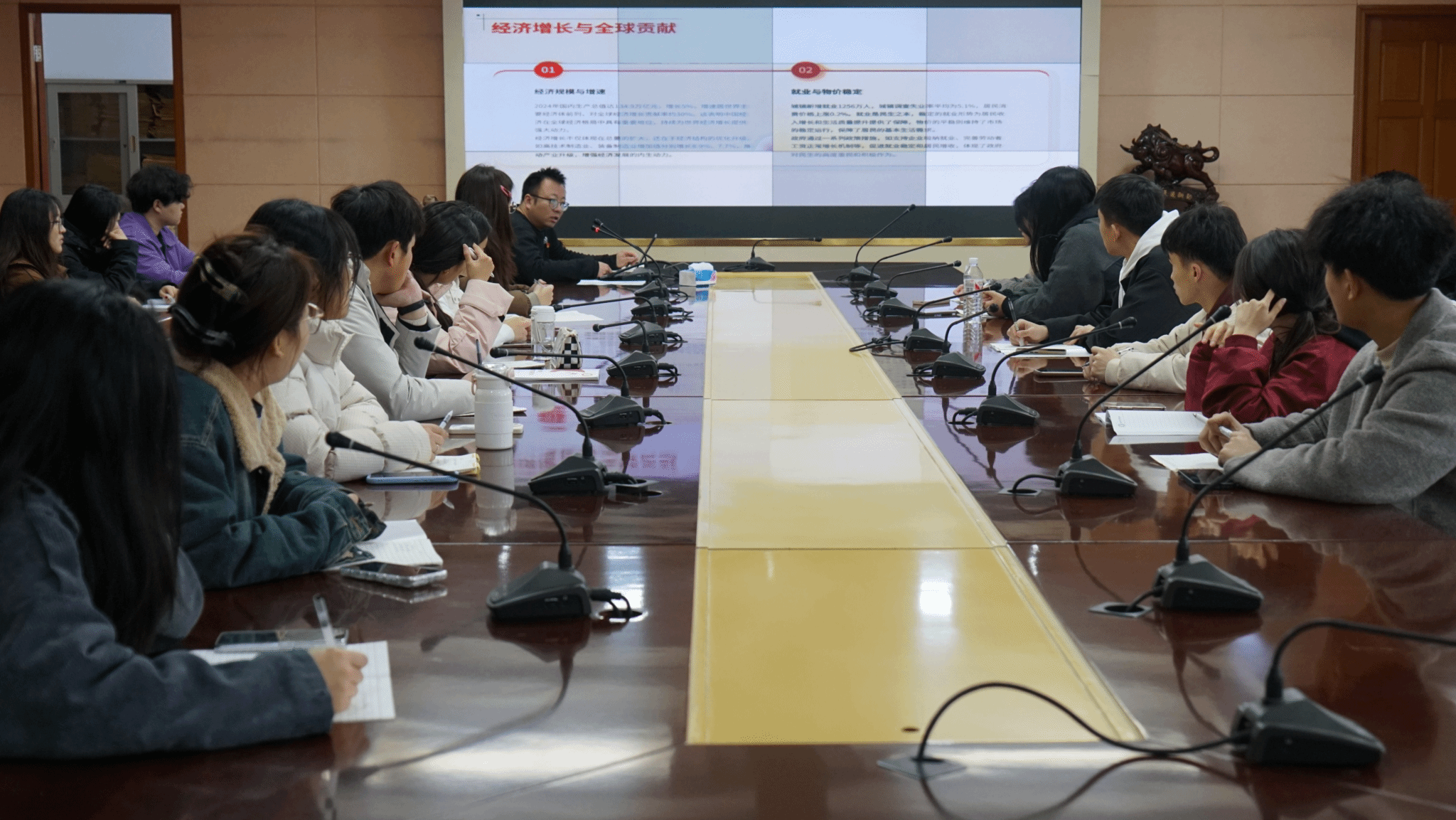 3月12日中午,会计学院组织团员青年代表在明德楼二号会议室共同学习2025年全国两会精神,会计学院团总支书记陈嵊主持学习。
