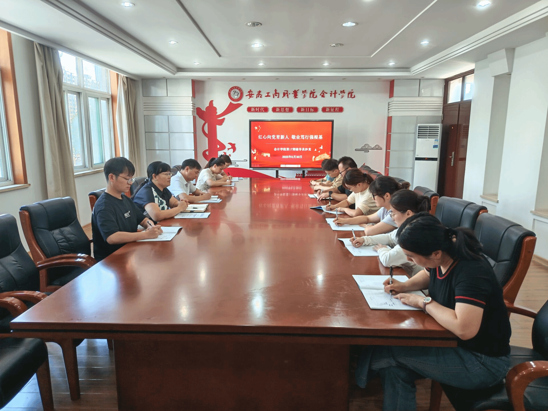 6月30日,会计学院在党建室举办第17期辅导员沙龙。本次沙龙以“红心向党育新人 敬业笃行强根基”为主题,会计学院党总支书记赵艳及全体专职辅导员参加活动,党总支副书记李峰主持。